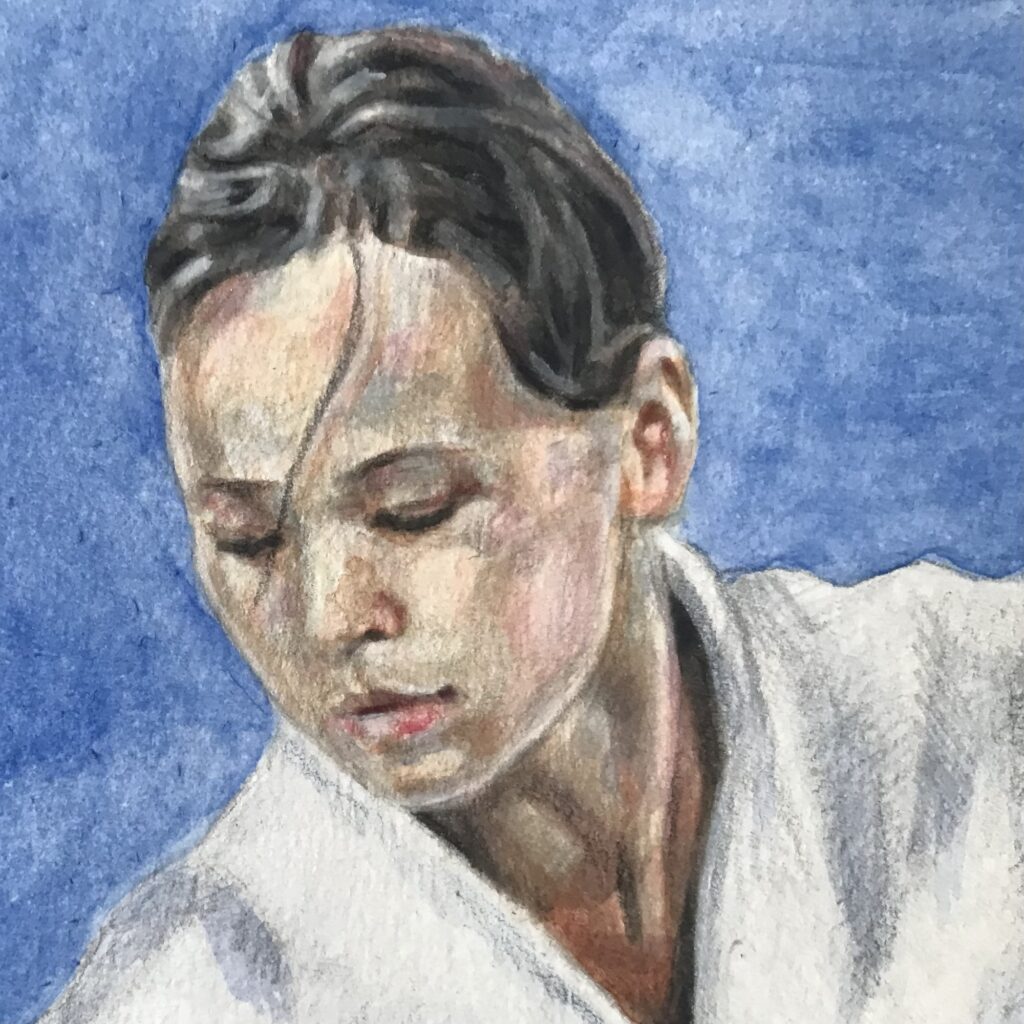 Dieses Aquarell entstand als Auftragsarbeit als Geschenk für die abgebildete Aikido-Praktizierende.